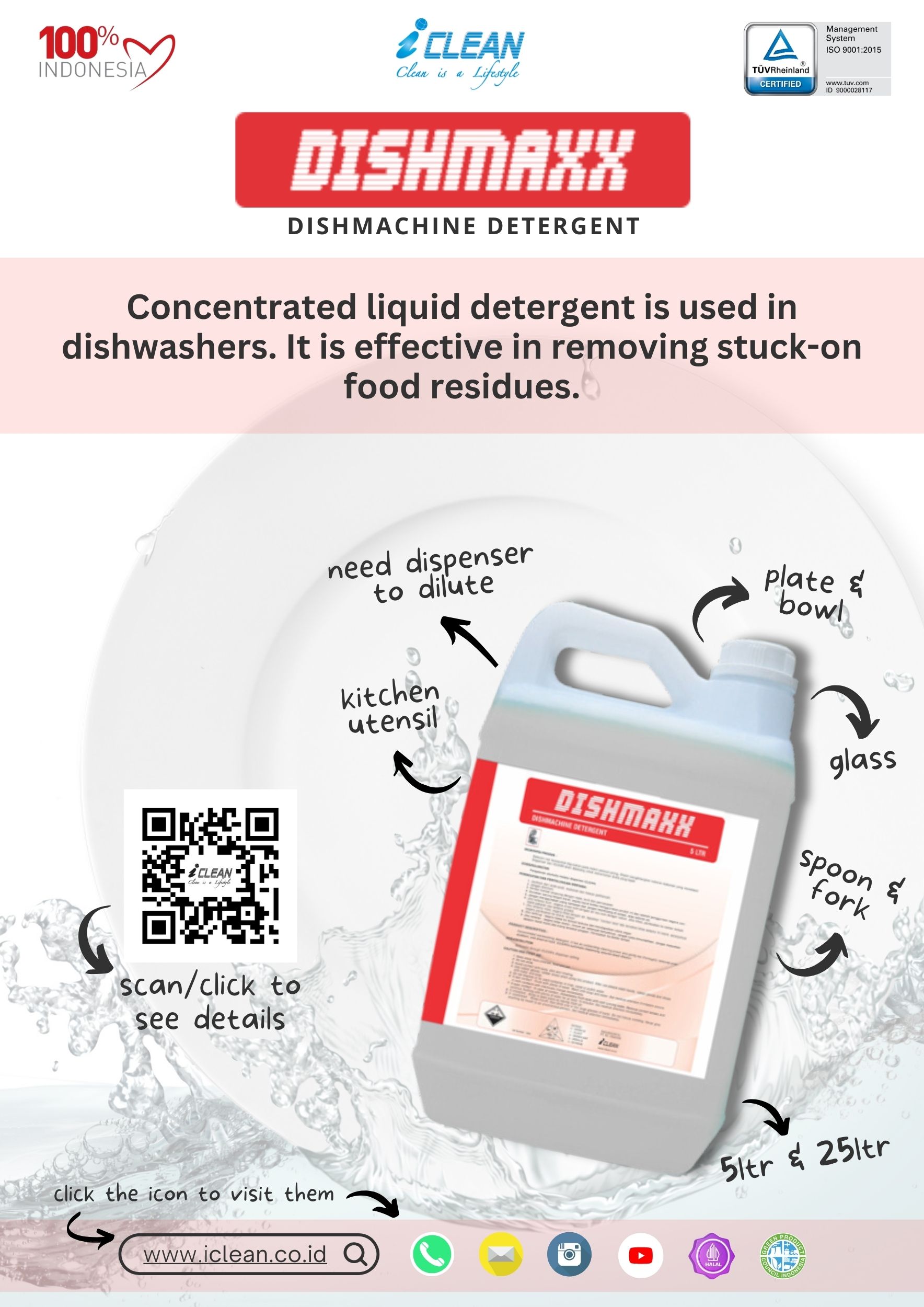 Concentrated liquid detergent is used in dishwashers. It is effective in removing stuck-on food residues.